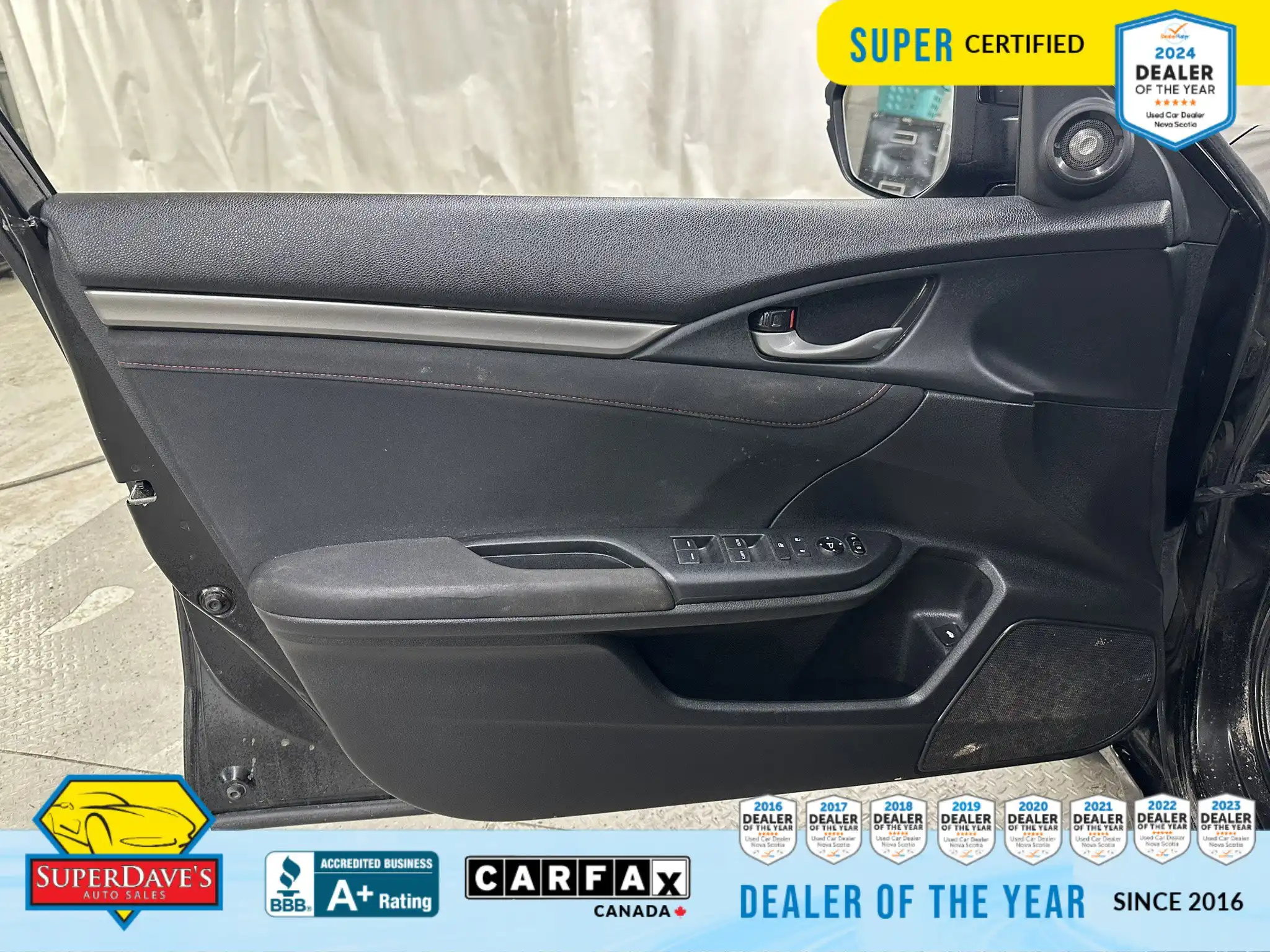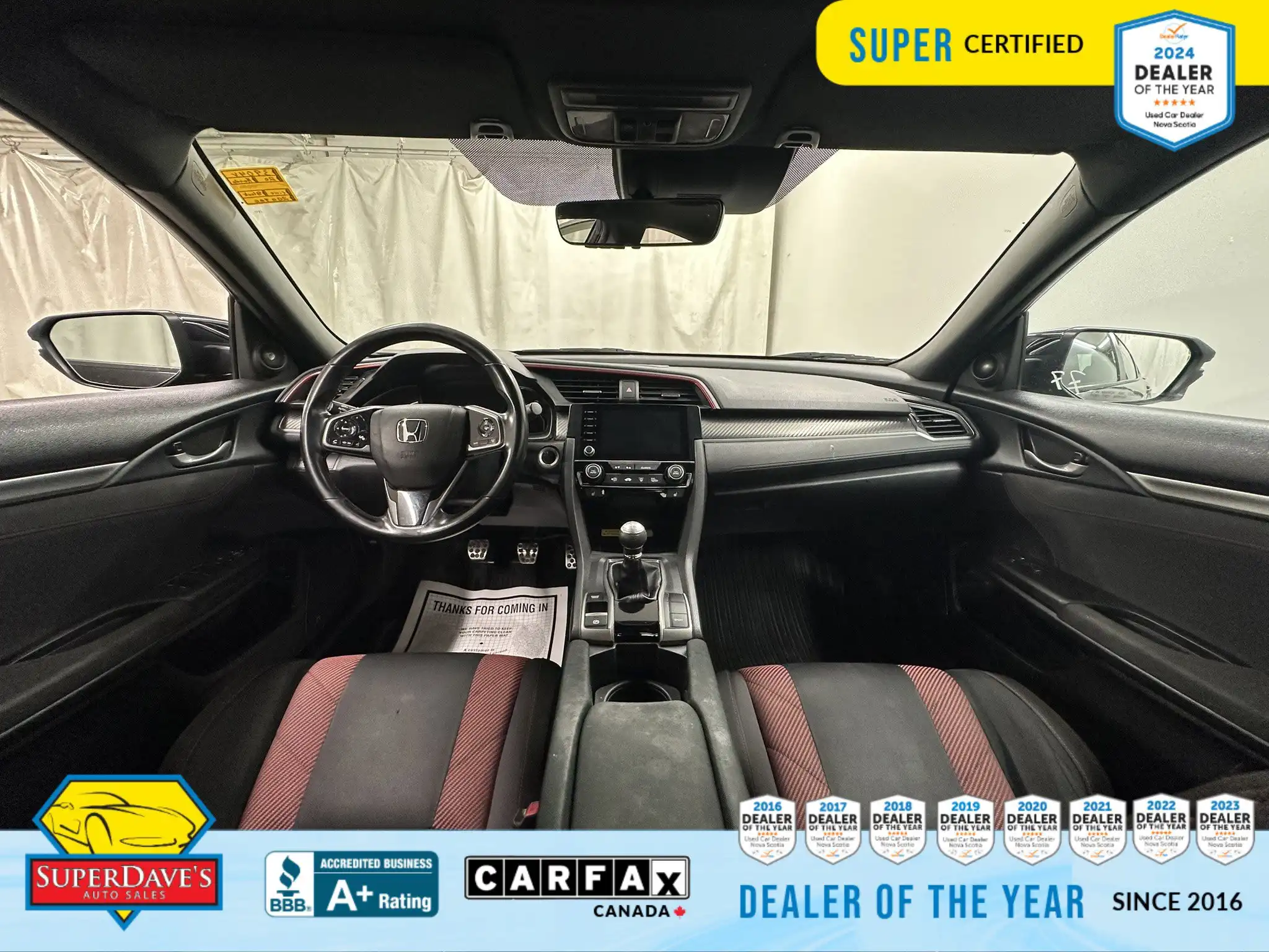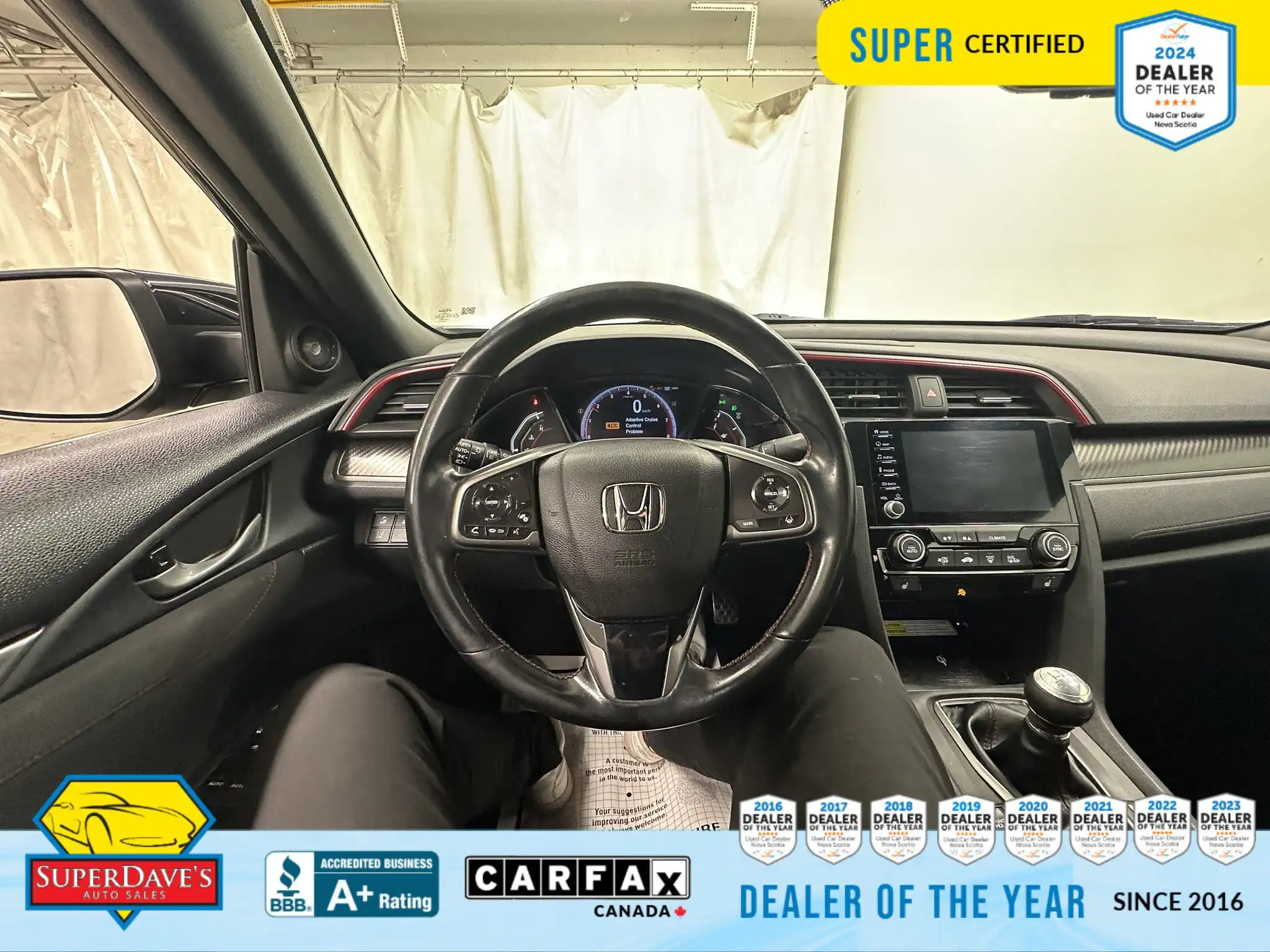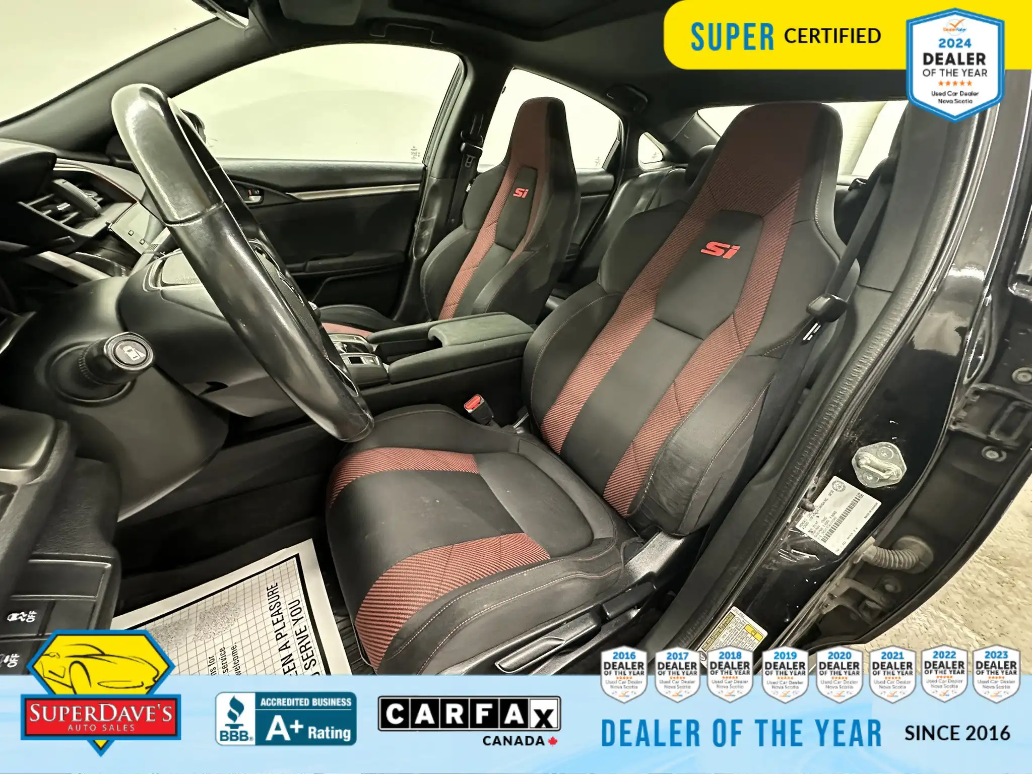 This vehicle is being offered as MVI Only to keep the price low — Super Dave’s Auto Sales passes these cars with a new Nova Scotia MVI and then sells them at auction-house prices rather than inflating the cost with full reconditioning. That means you get a safe, inspected vehicle that hasn’t been marked up for a full Super Certification. If you’re mechanically handy or looking for an affordable, fun-to-drive commuter or project car, this Civic Si checks the boxes: supportive bucket seats, responsive steering, modern safety assists like lane departure warnings and front collision mitigation, and creature comforts like climate control and Bluetooth. Interested? Call or drop by to see it — cars at this price move quickly, and we’re happy to answer questions or arrange a viewing.