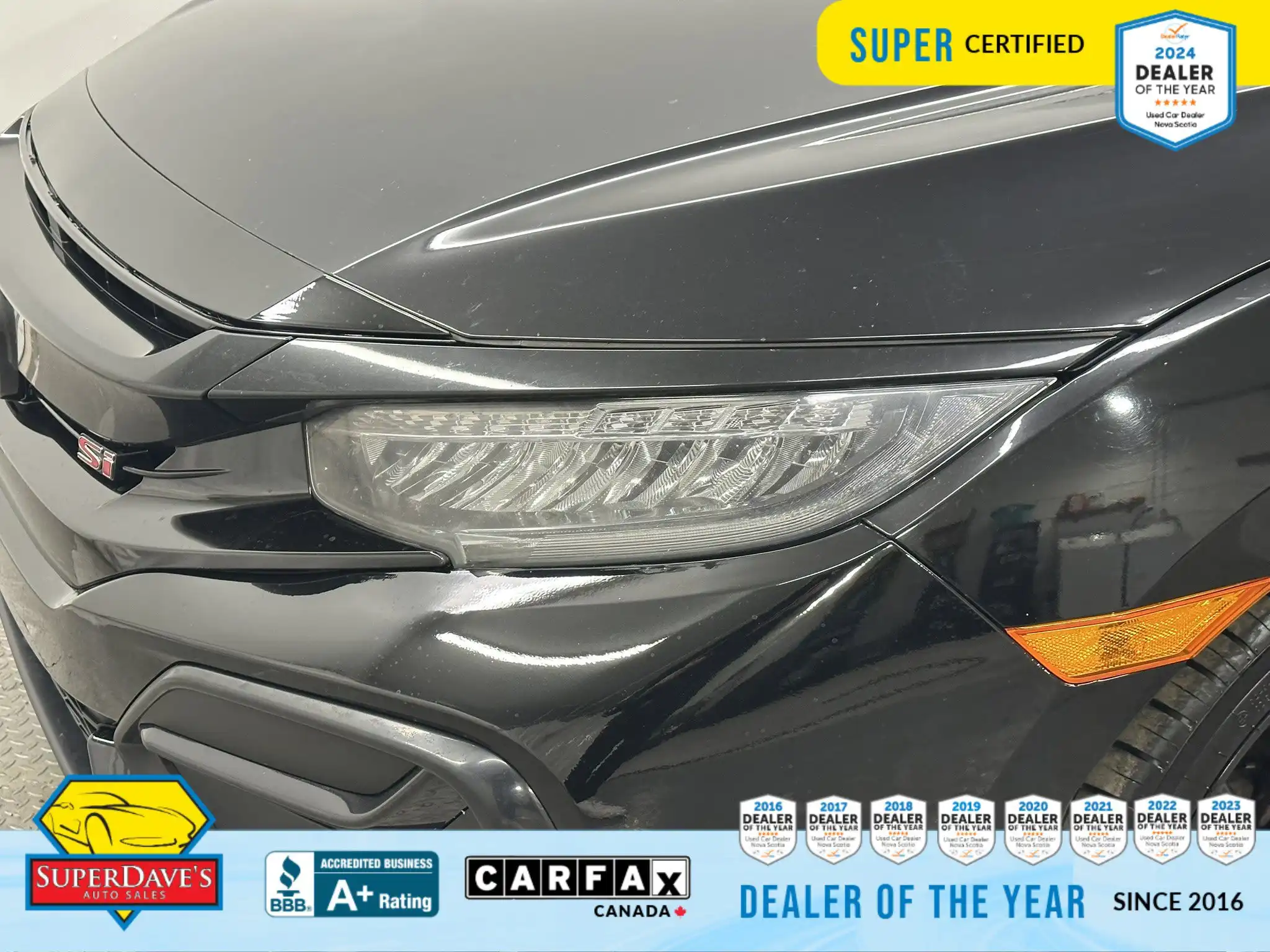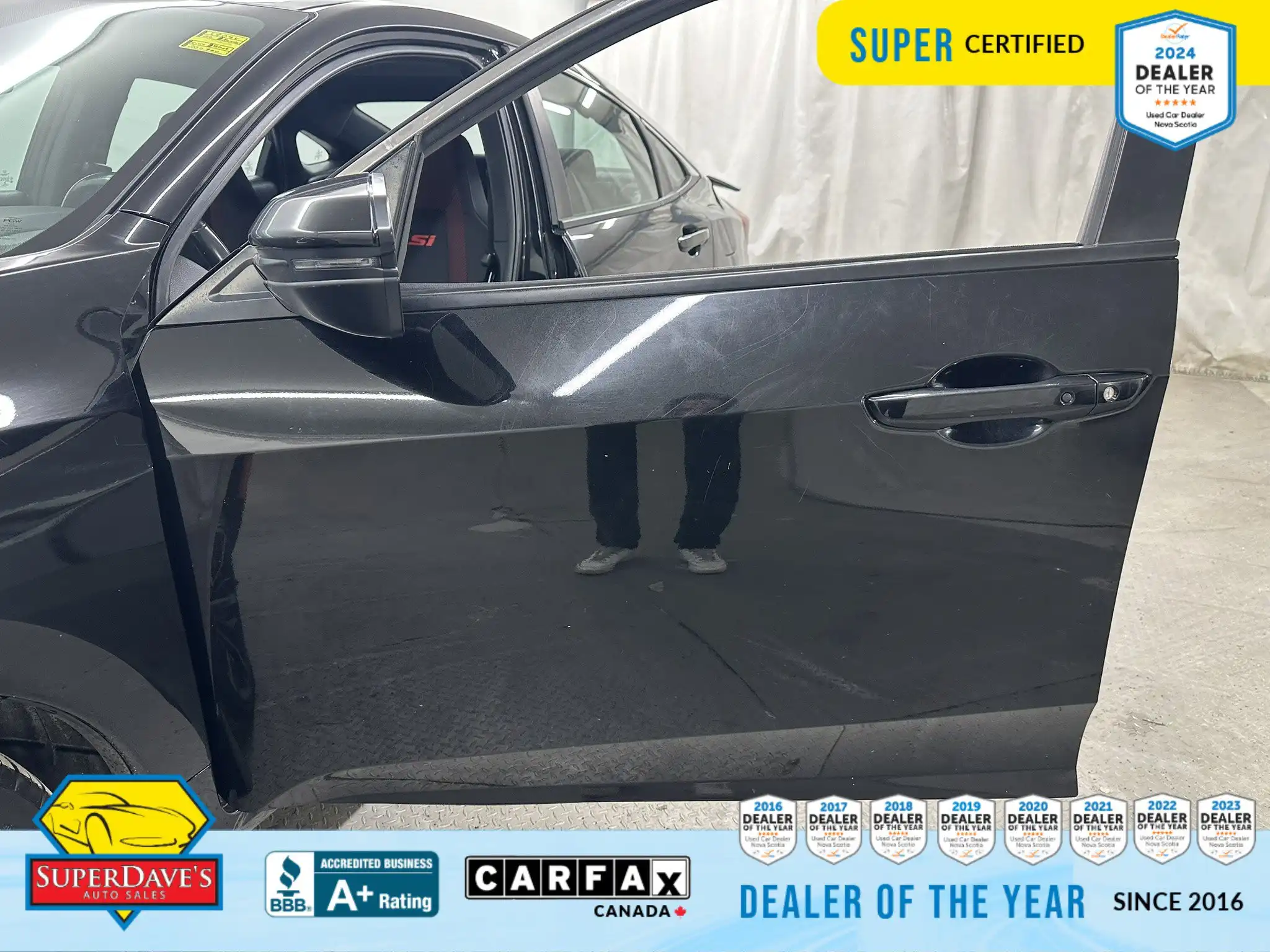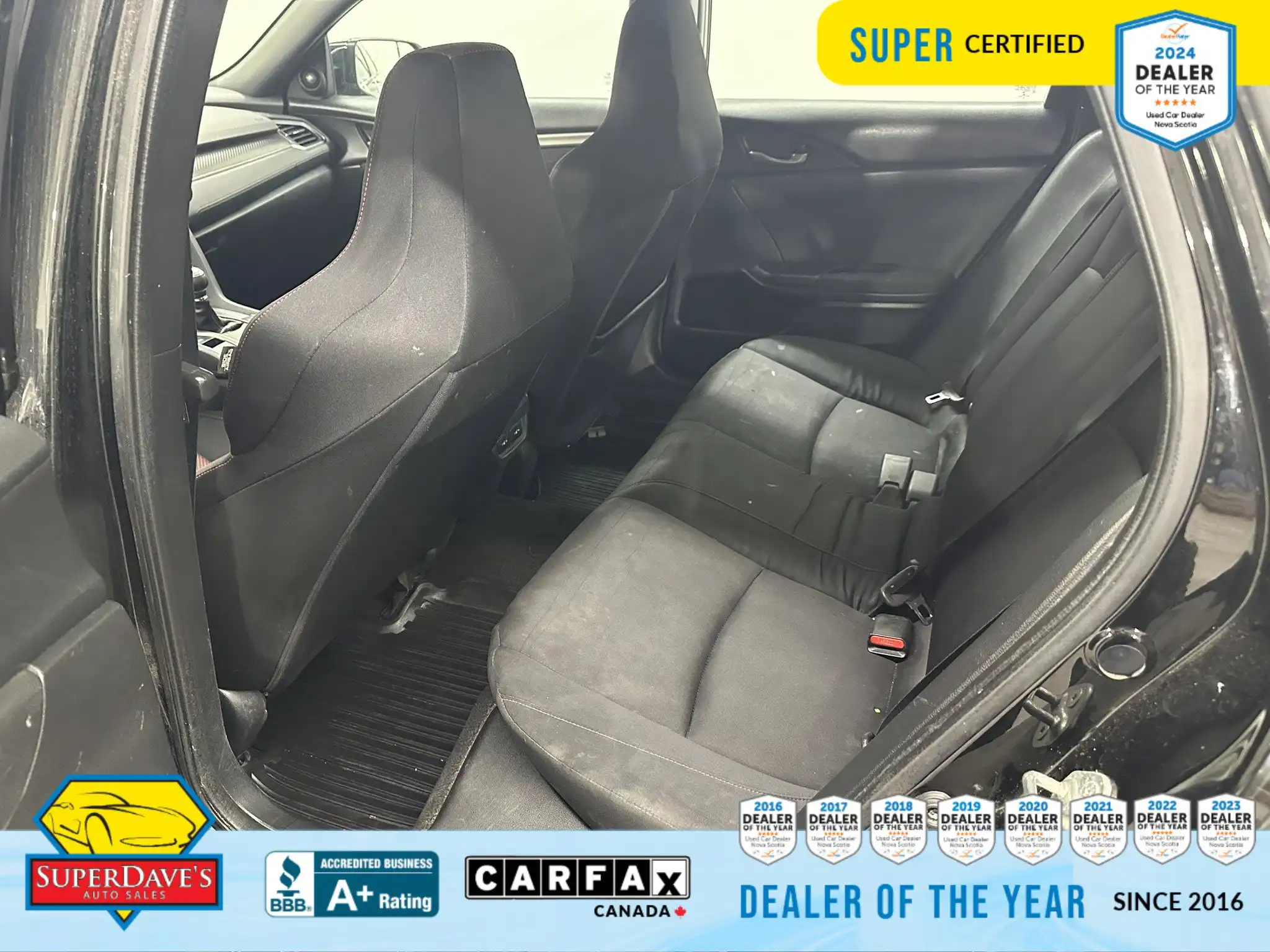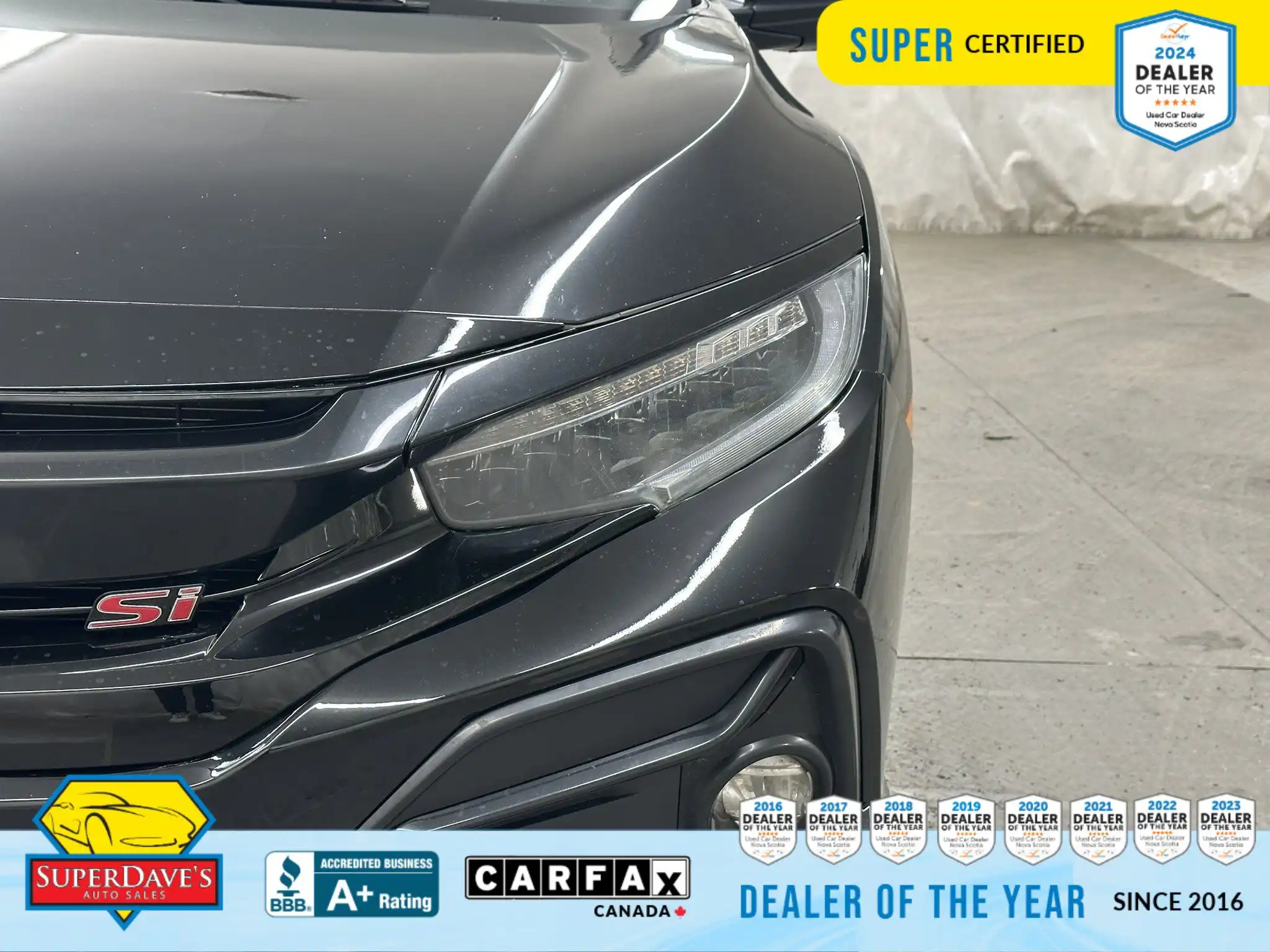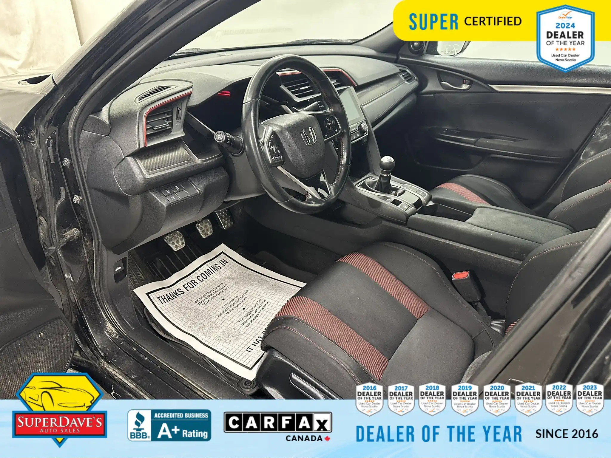 This vehicle is being offered as MVI Only to keep the price low — Super Dave’s Auto Sales passes these cars with a new Nova Scotia MVI and then sells them at auction-house prices rather than inflating the cost with full reconditioning. That means you get a safe, inspected vehicle that hasn’t been marked up for a full Super Certification. If you’re mechanically handy or looking for an affordable, fun-to-drive commuter or project car, this Civic Si checks the boxes: supportive bucket seats, responsive steering, modern safety assists like lane departure warnings and front collision mitigation, and creature comforts like climate control and Bluetooth. Interested? Call or drop by to see it — cars at this price move quickly, and we’re happy to answer questions or arrange a viewing.