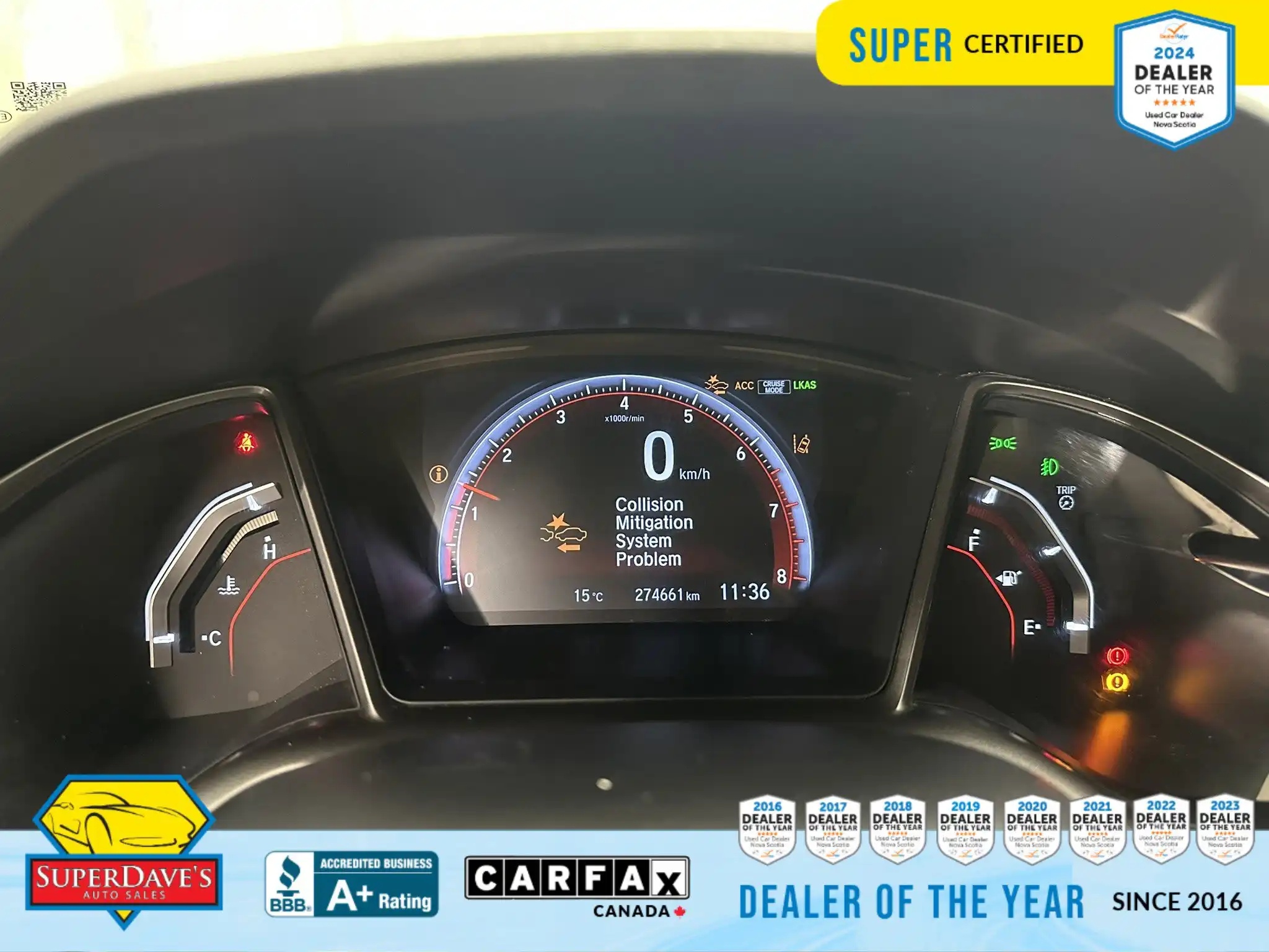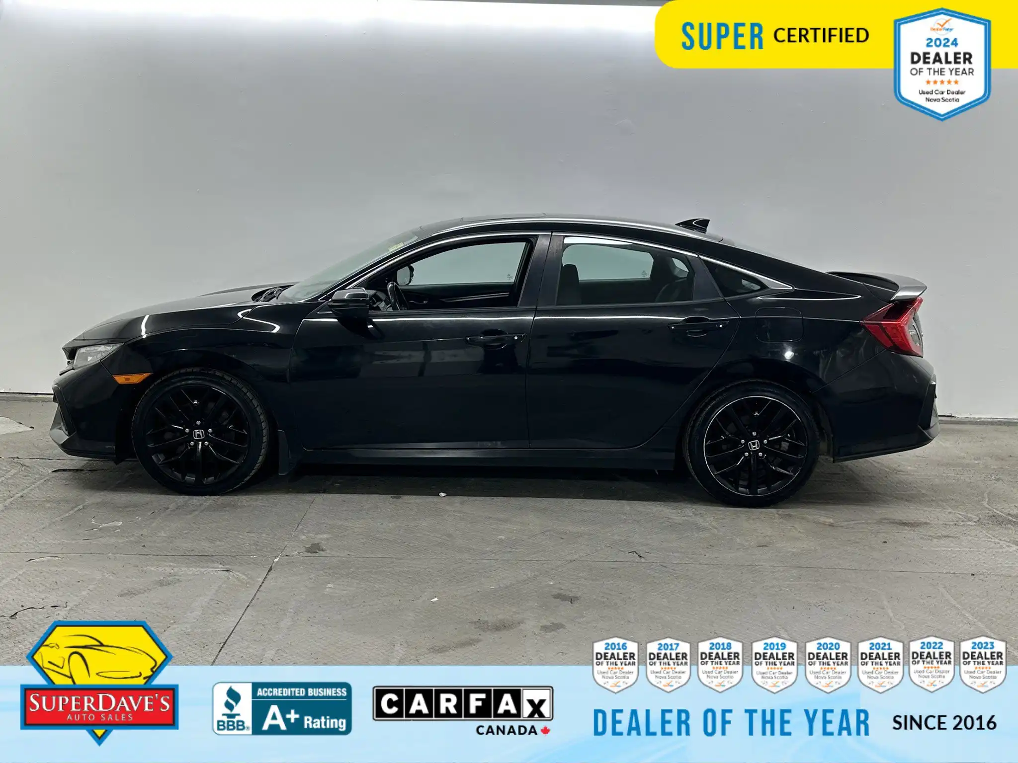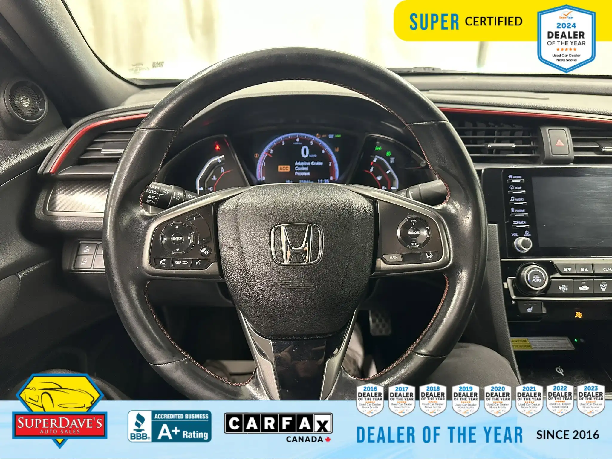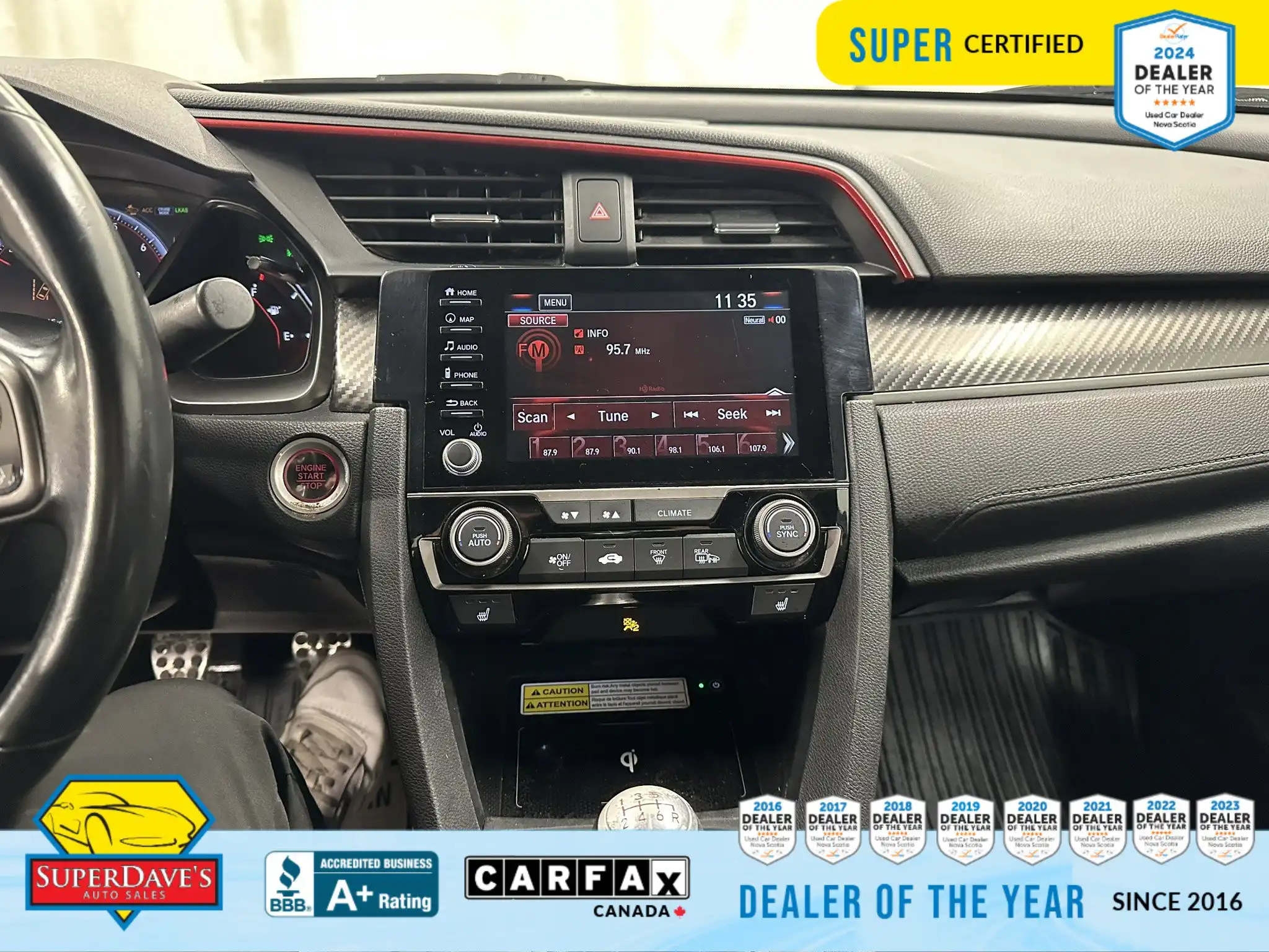 This vehicle is being offered as MVI Only to keep the price low — Super Dave’s Auto Sales passes these cars with a new Nova Scotia MVI and then sells them at auction-house prices rather than inflating the cost with full reconditioning. That means you get a safe, inspected vehicle that hasn’t been marked up for a full Super Certification. If you’re mechanically handy or looking for an affordable, fun-to-drive commuter or project car, this Civic Si checks the boxes: supportive bucket seats, responsive steering, modern safety assists like lane departure warnings and front collision mitigation, and creature comforts like climate control and Bluetooth. Interested? Call or drop by to see it — cars at this price move quickly, and we’re happy to answer questions or arrange a viewing.