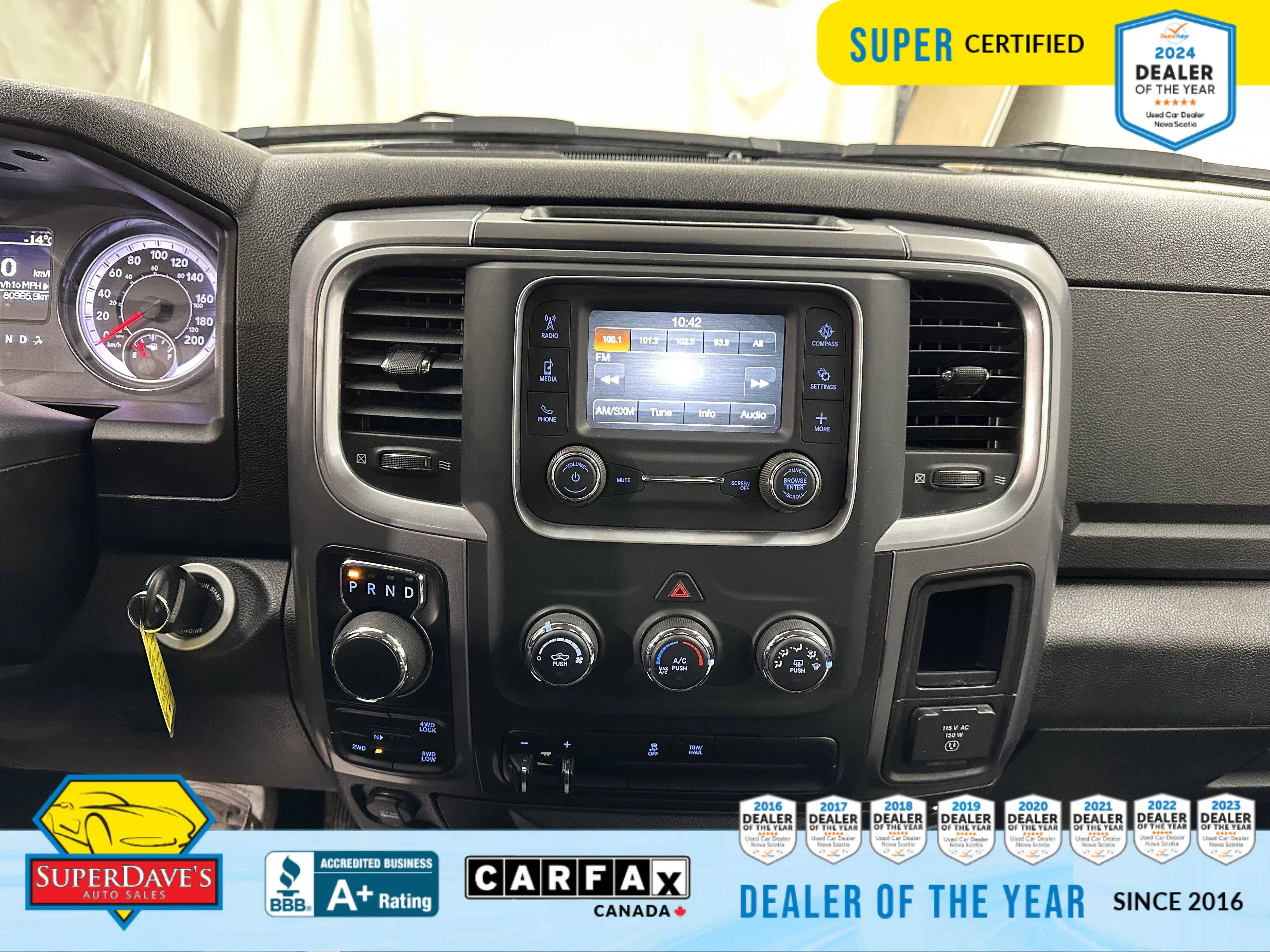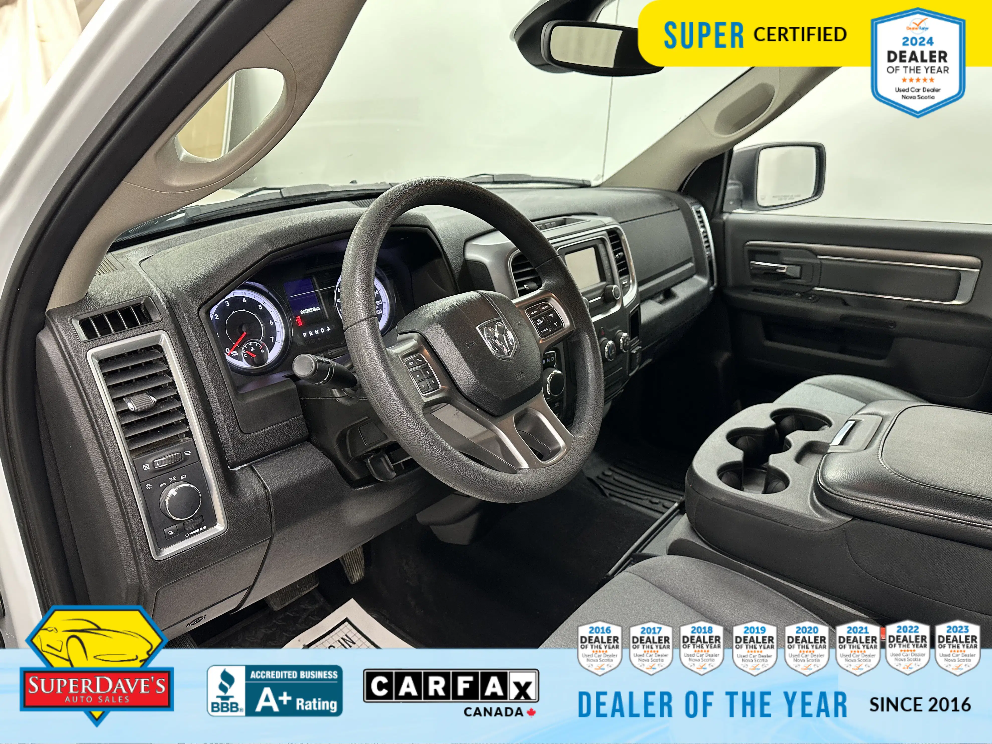 Inside, the Diesel Grey/Black premium cloth 40/20/40 bench gives you comfortable seating for six and smart versatility with a 60/40 split-folding rear bench and a fold-flat load floor — perfect for hauling gear or rearranging the cabin on the fly. The power 10-way driver seat with lumbar support and thoughtful touches like a 115-volt auxiliary outlet, Mopar front & rear all-weather floor mats, and convenient front center storage make long days easier.