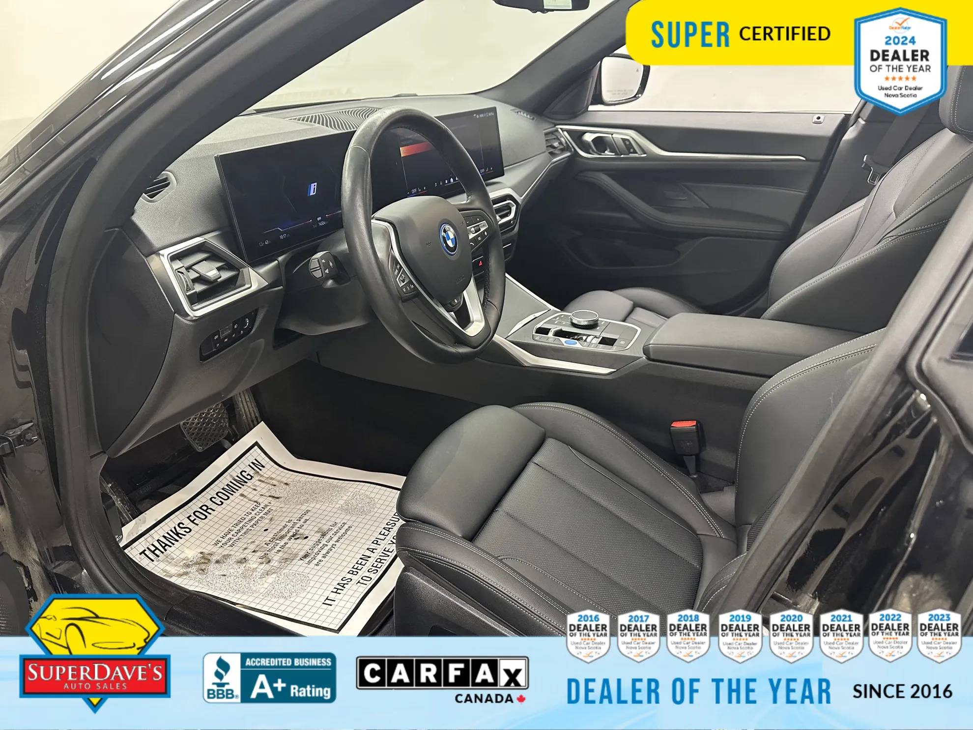 Meet the 2024 BMW i4 eDrive35 — a sharp, low mileage electric sedan that blends BMW sportiness with everyday refinement. This Super Certified example has just 14,021 km and arrives in striking black with a matching black interior, aluminum wheels, and a suite of tech and comfort features that make it as practical as it is fun to drive. Priced at $43,295 and stocked under 18406A, it’s a smart way to step into electric driving without compromise.