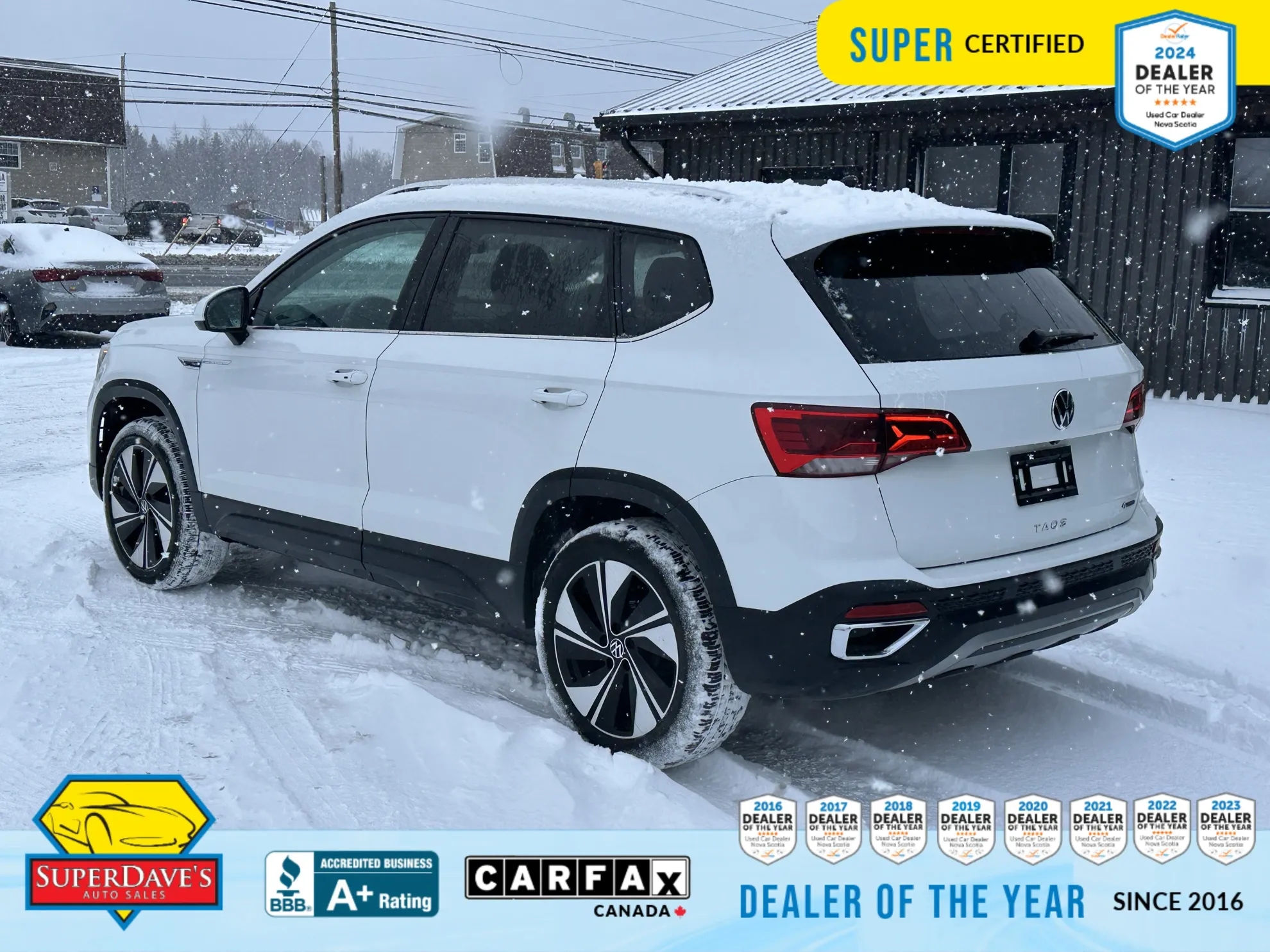 Here’s a stylish, well-equipped 2024 Volkswagen Taos Comfortline that’s ready to elevate your daily drive — and it’s priced attractively at $28,595.00. This white SUV blends turbocharged pep from a 1.5L four-cylinder with an intelligent 7-speed auto-shift manual transmission and all-wheel drive, giving you confident handling in changing conditions and confident acceleration when you need it. Even with a curious 66,150 km showing on the odometer, this Taos is in new condition and packed with features that make life easier and more comfortable behind the wheel.
